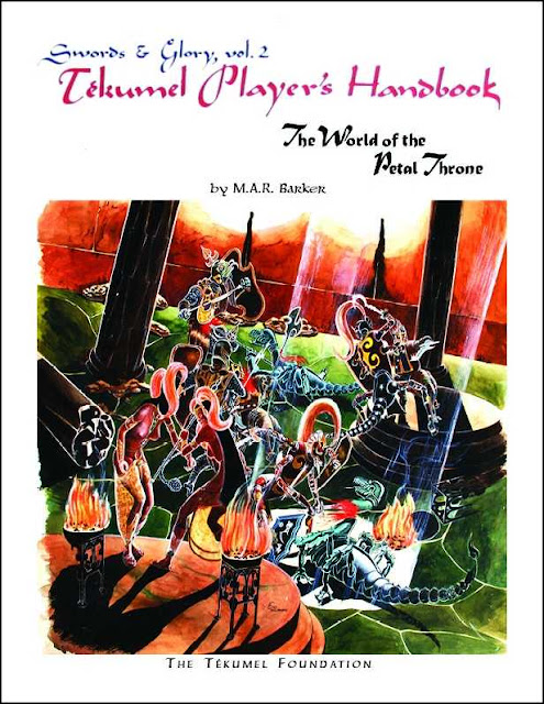 When I expressed my joy on Facebook, Victor Raymond, one of the, well, founders, I guess, of the Tekumel Foundation pinged me and asked if I'd be interested in reviewing it if he sent me a copy. I've known Victor for five or six years now, and even played in a con game he ran, poking about in the Underworld of Jakalla, so I was more than happy to help him out. Plus, you know, BOOK.